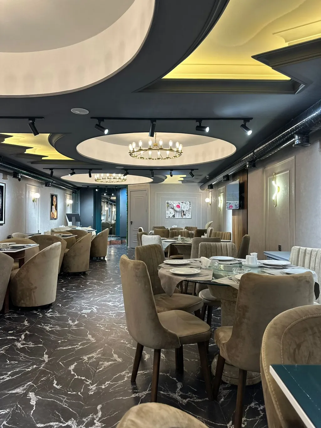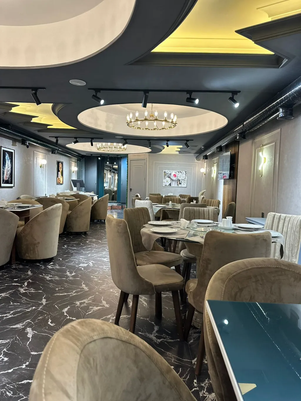 Azərbaycan və Avropa mətbəxi. Banket zalı korporativ və tədbirlər üçün. VIP otaqlar. Həftə sonları canlı musiqi. Onlayn stolların bronu.